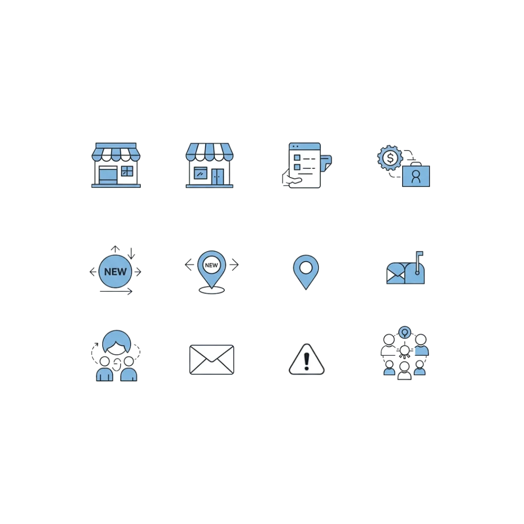 - Retail stores, clinics, salons, restaurants, cafés, auto shops, pharmacies, showrooms